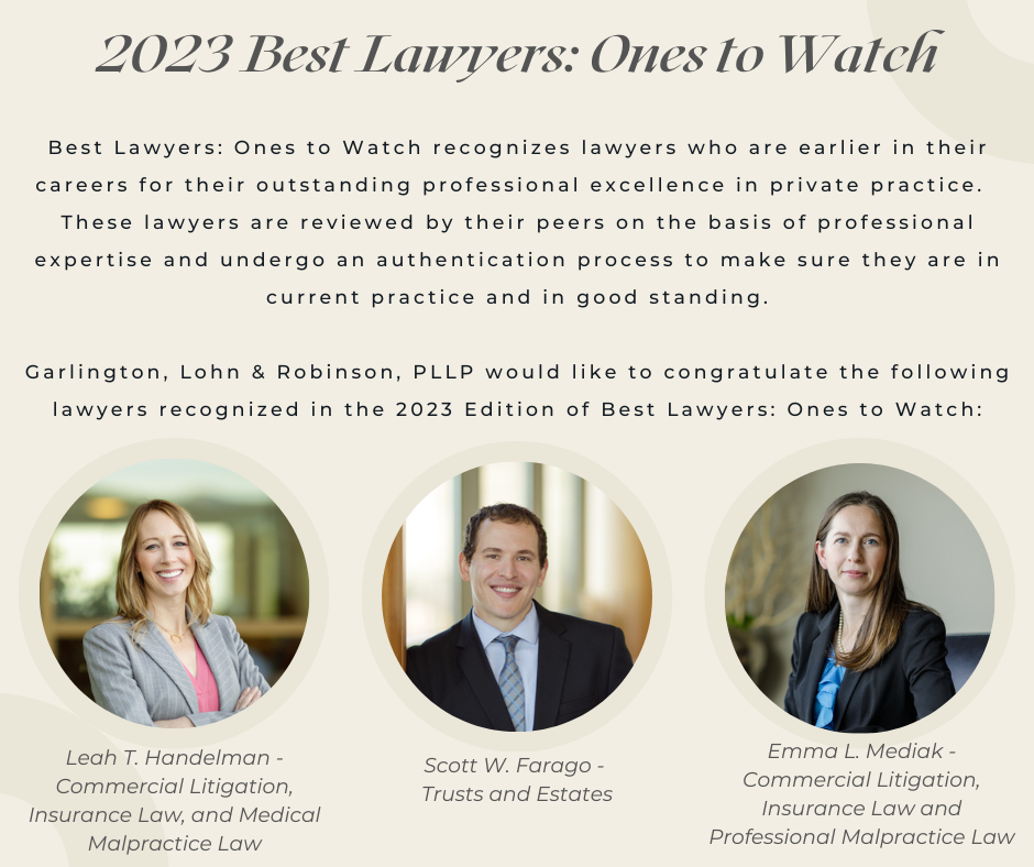 Garlington, Lohn & Robinson, PLLP would like to congratulate the following lawyers recognized in the 2023 edition of Best Lawyers: Ones to Watch in America: