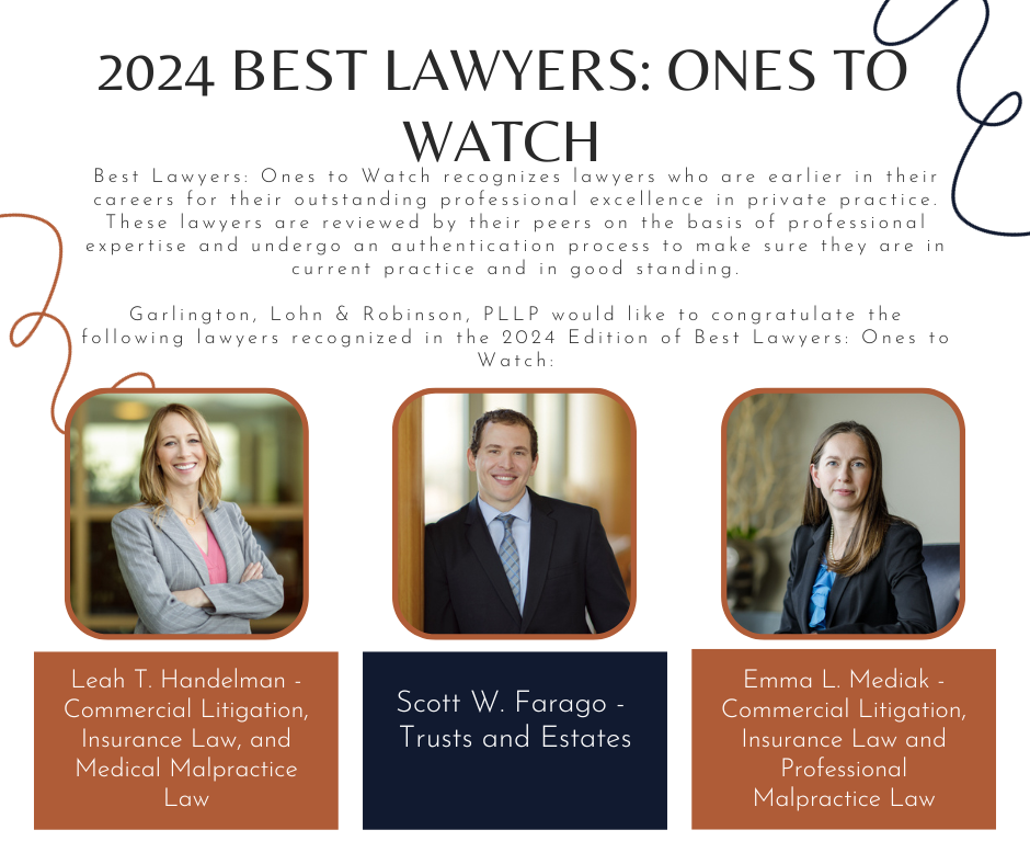 Garlington, Lohn & Robinson, PLLP would like to congratulate the following lawyers recognized in the 2024 edition of Best Lawyers: Ones to Watch in America: