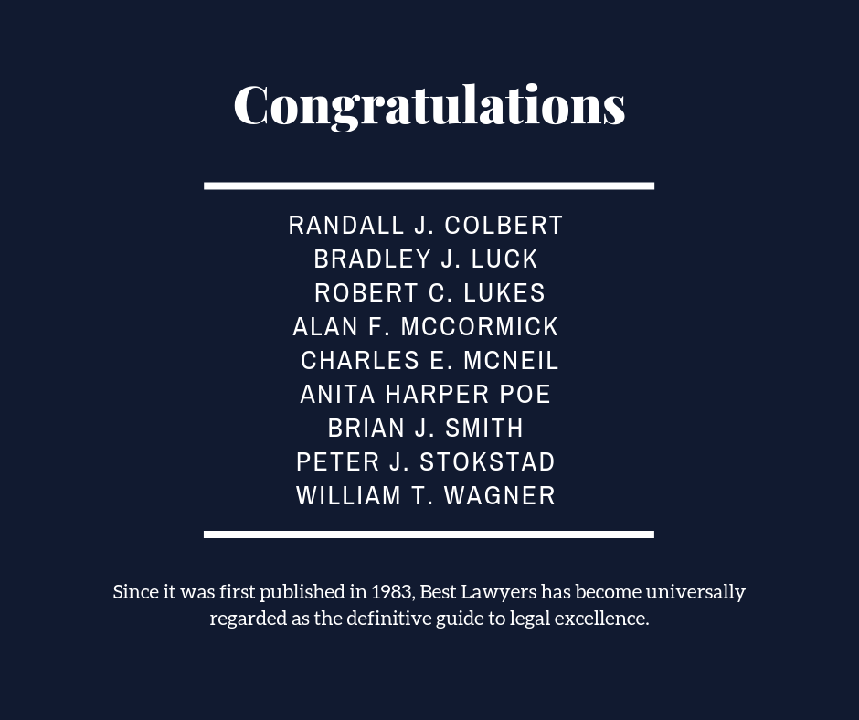 - Bradley J. Luck – Insurance Law, Workers’ Compensation Law – Employers, Personal Injury Litigation – Defendants, Legal Malpractice Law – Defendants